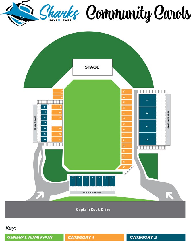 Grandstand Seating – Enjoy a great view of the stage from the comfort of the stands.